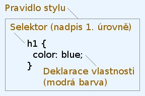 Nižšie uvedené pravidlo sa aplikuje na nadpis 1. úrovne, ktorému nastaví modrú farbu.
