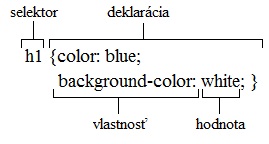 Na miesto selektora môžeme použiť rad elementov , okrem spomínaných nadpisov napríklad body , p , div alebo triedy , pričom je možné určiť vlastnosti aj pre viac prvkov súčasne: H2, H3, H4 {color:blue;} . Text v zložených zátvorkách potom nazývame blok deklarácií.
